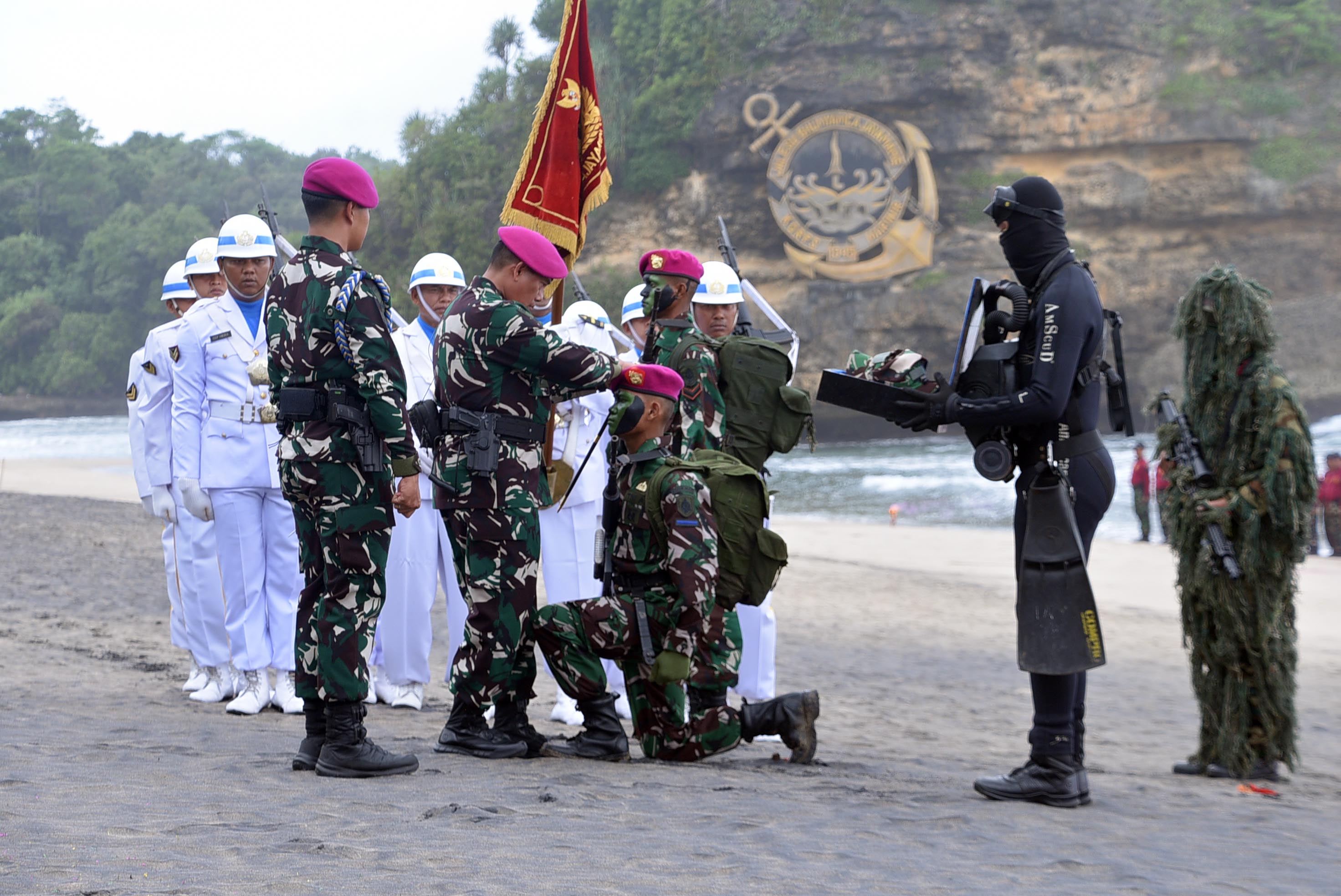 Korps Marinir di Pantai Baruna, Malang Selatan, Selasa (16/9).
