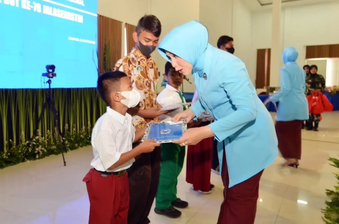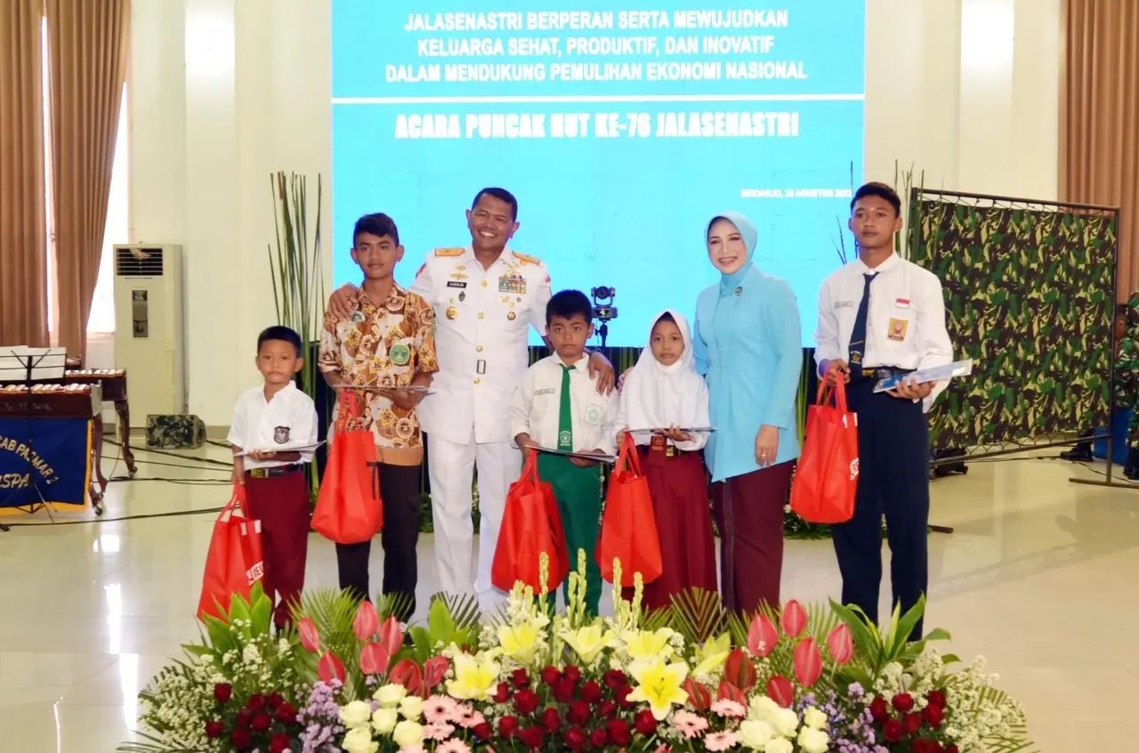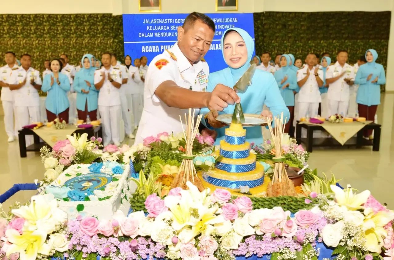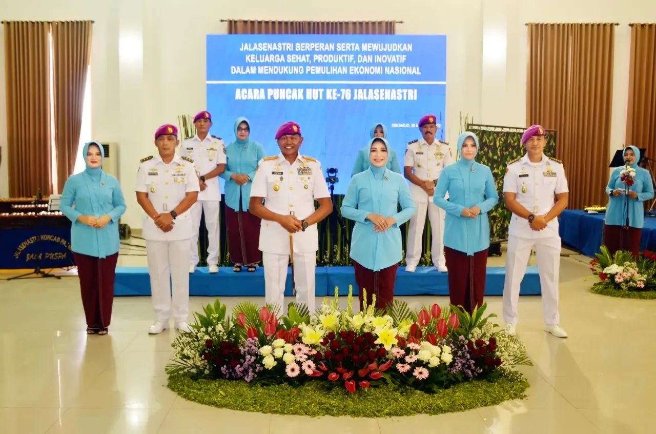 Dispen Kormar (Sidoarjo). Komandan Pasmar 2 (Danpasmar 2) Brigjen TNI (Mar) Suherlan bersama Ketua Korcab Pasmar 2 Gabungan Jalasenastri Korps Marinir Ny Uni Suherlan menghadiri peringatan hari ulang tahun (HUT) ke 76 Jalasenastri di Balai Prajurit Pasmar 2 Jalan A Yani No. 1a gedangan Sidoarjo. Selasa (30/08/2022)