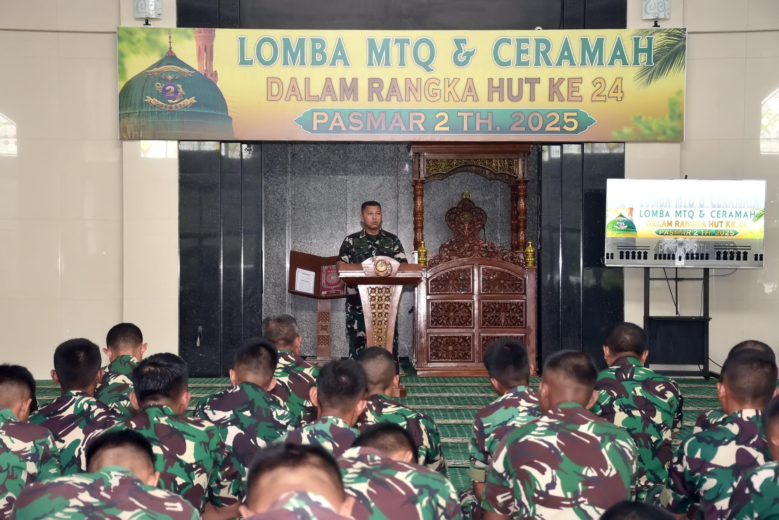 Dalam sambutannya Komandan Pasmar 2 mengatakan, lomba MTQ dan ceramah dalam rangka HUT ke-24 Pasmar 2 ini merupakan bagian dari pembinaan mental rohani bagi prajurit Pasmar 2 dan keluarganya dalam meningkatkan keimanan dan ketaqwaan kepada Allah SWT. Lomba ini diselenggarakan dengan tujuan untuk menggali potensi yang ada diantara para prajurit dan keluarga besar Pasmar 2 dalam membaca kitab suci al-qur'an dan berceramah agama secara baik dan benar.
