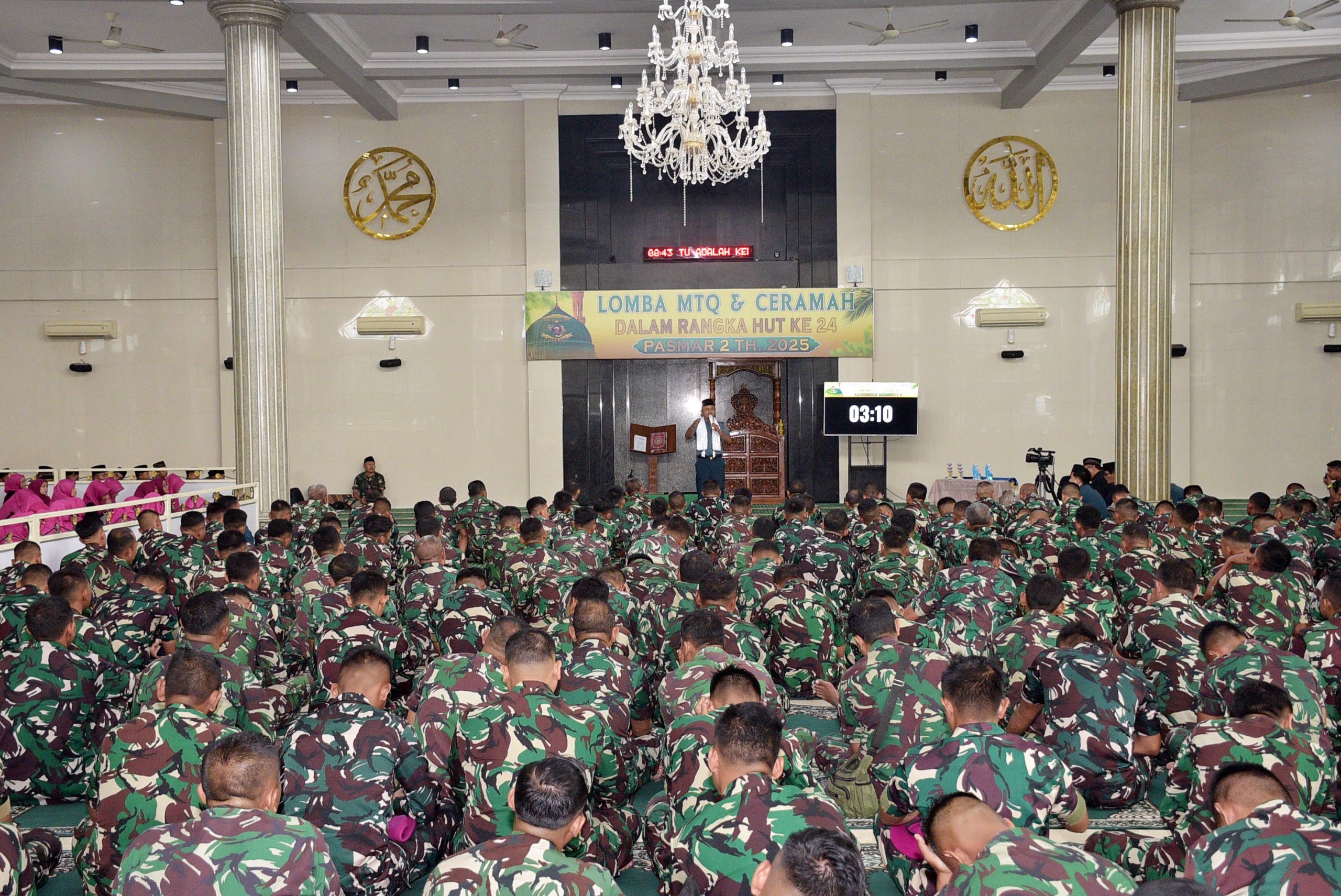 Lomba MTQ dan ceramah diikuti perwakilan prajurit dan jalasenastri dari Komando Pelaksana jajaran Pasmar 2, dibuka langsung oleh Komandan Pasmar 2 Brigjen TNI (Mar) Nanang Saefulloh, S.E., M.M., dihadiri Wadan Pasmar 2 Kolonel Marinir Arief Rahman H. Anggorojati, S.E., CTMP., M.M., para Asisten Danpasmar 2 dan Dankolak/Satlak jajaran Pasmar 2.
