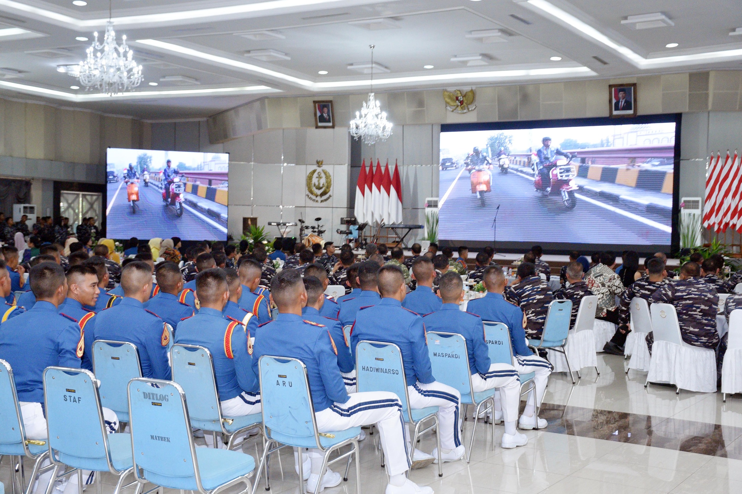 Dispen Kormar, TNI AL (Surabaya). Komandan Pasmar 2 Mayjen TNI (Mar) Dr. Oni Junianto didampingi Ketua Korcab Pasmar 2 Gabungan Jalasenastri Korps Marinir Ny. Dian Oni Junianto, menghadiri acara Lepas Sambut Gubernur Akademi Angkatan Laut (AAL) di Gedung Maspardi, Kampus AAL, Bumimoro, Surabaya. Jumat (24/10).