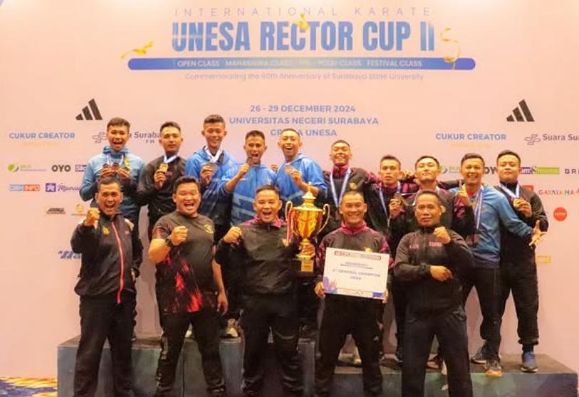 Dispen Kormar TNI Angkatan Laut (Surabaya). Kontingen Karate Cabang Khusus (Cabsus) Shoto-kai Pasmar 2 berhasil meraih prestasi gemilang pada ajang International Karate Rektor Cup Unesa II di Graha Unesa Universitas Negeri Surabaya, Lidah Wetan, Kec. Lakarsantri, Surabaya. Minggu (29/12/2024).