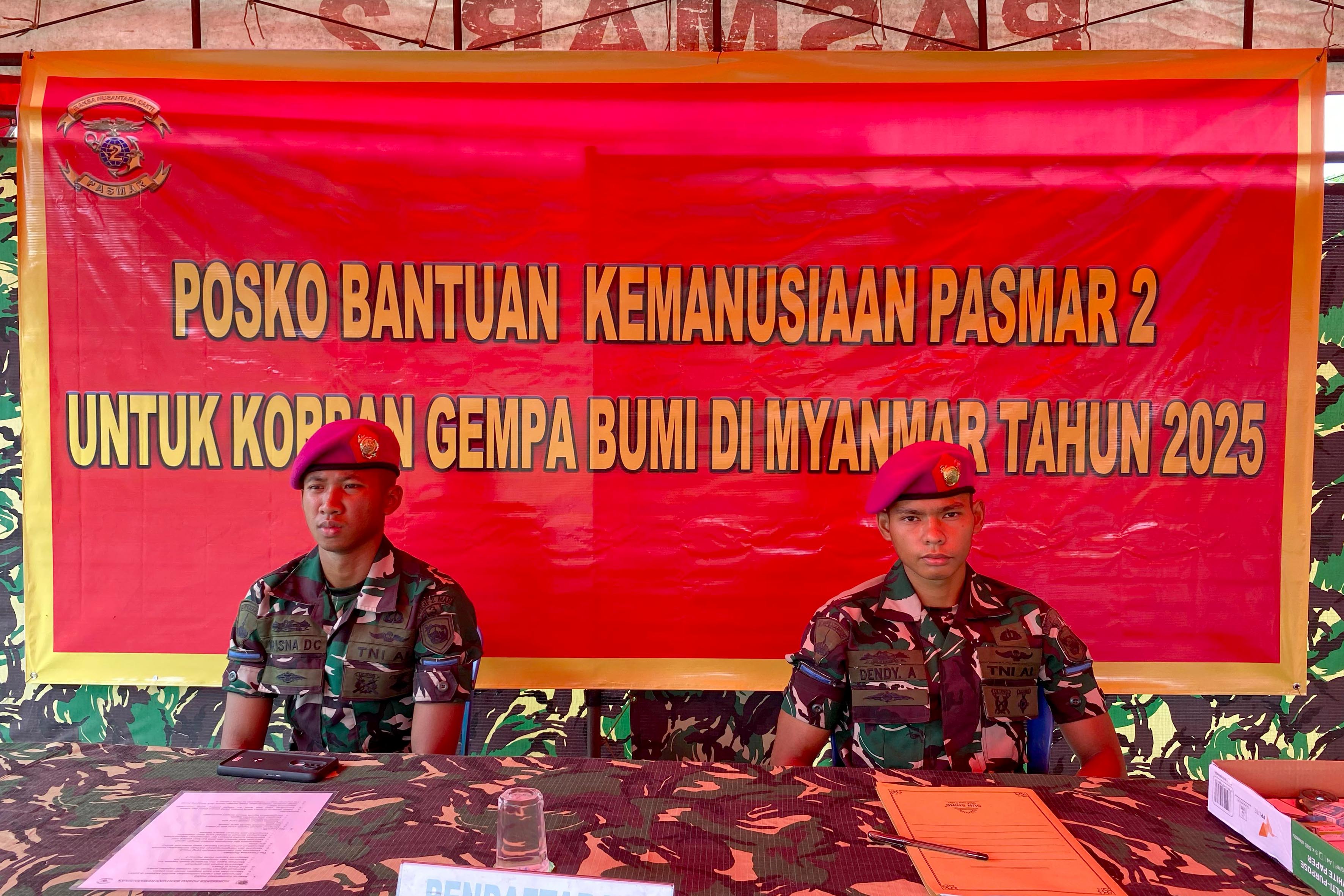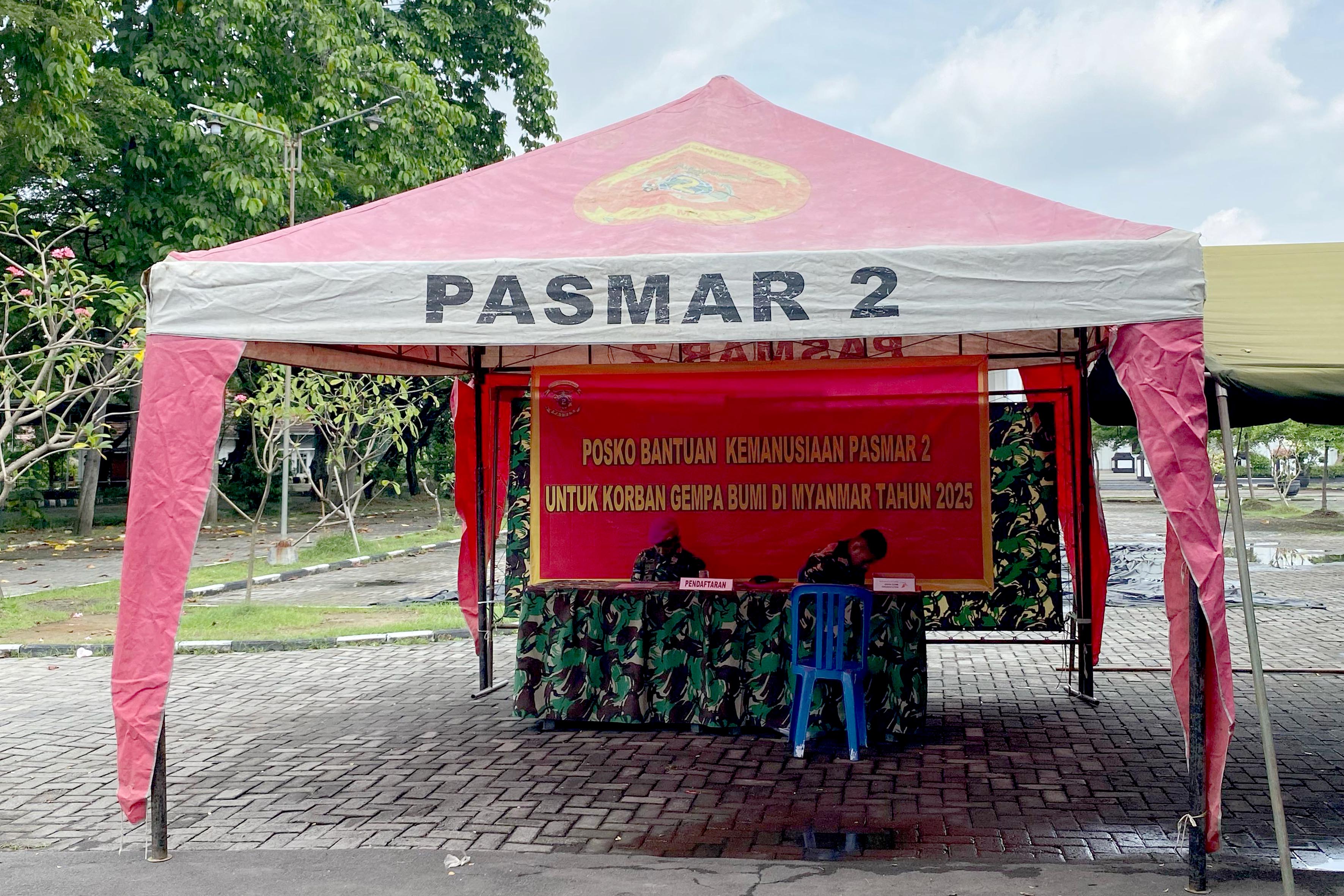 Pasmar 2 Korps Marinir TNI Angkatan Laut mendirikan Posko Bantuan Kemanusiaan untuk korban gempa bumi di Myanmar, sebagai bagian dari pelaksanaan tugas-tugas TNI pada Operasi Militer Selain Perang. Senin (31/03/2025)