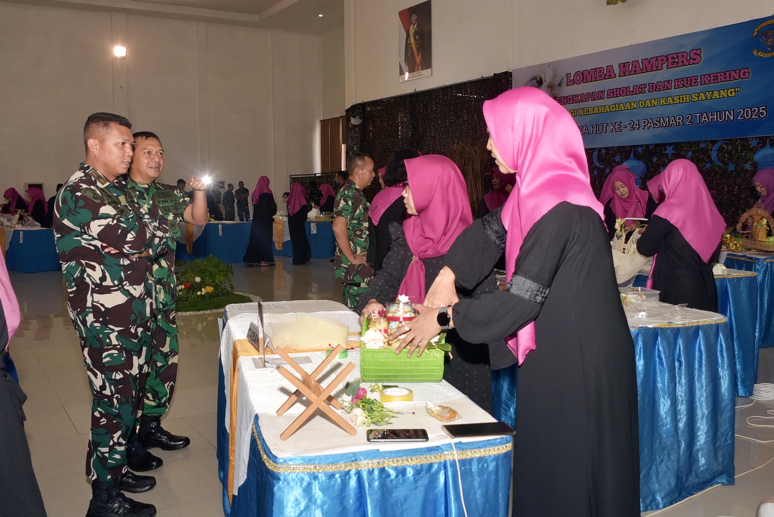 Lomba hampers perlengkapan sholat dan kue kering yang diselenggarakan dalam rangka HUT Ke 24 Pasmar 2 Tahun 2025, mengangkat tema Berbagi Kebahagiaan dan Kasih SayangÂ, dibuka langsung oleh Komandan Pasmar 2 Brigjen TNI (Mar) Nanang Saefulloh, S.E., M.M., dengan menghadirkan tim Penilai dari Dinas Kebudayaan Kepemudaan dan Olahraga Kota Surabaya.