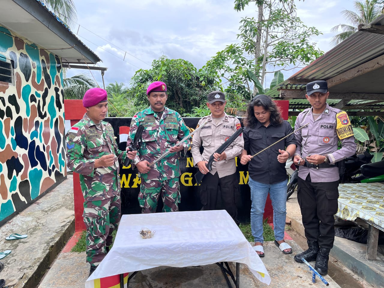 Dispen Kormar TNI Angkatan Laut (Sebatik Perbatasan Indonesia Malaysia). Pada hari Minggu, 9 Maret 2025, Tim Gabungan yang terdiri dari Satgas Marinir Ambalat, Koramil Sebatik Barat, dan Polsek Sebatik Barat berhasil menggagalkan penyelundupan senjata rakitan di Dermaga Penyebrangan Bambangan Kecamatan Sebatik Barat, Kabupaten Nunukan, Kalimantan Utara. Penangkapan ini terjadi antara pukul 11.00 hingga 12.30 WITA, ketika tim yang sedang melaksanakan patroli rutin menemukan sebuah tas yang berisi komponen senjata rakitan, yang diduga berasal dari negara tetangga. Penemuan ini menunjukkan kewaspadaan dan profesionalisme tinggi dari Tim Gabungan yang menjaga perbatasan NKRI.