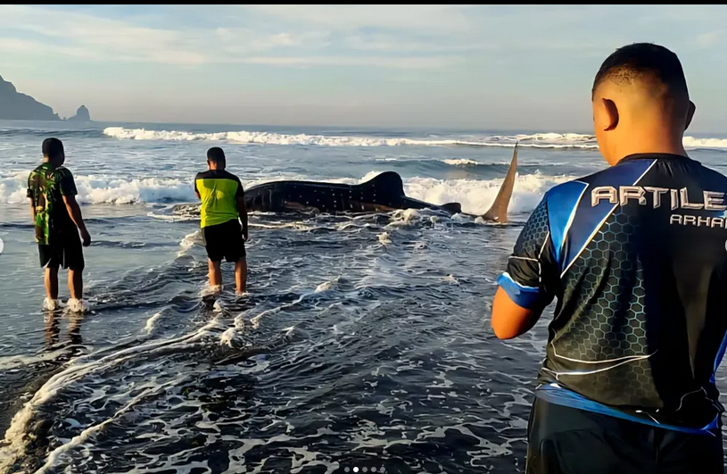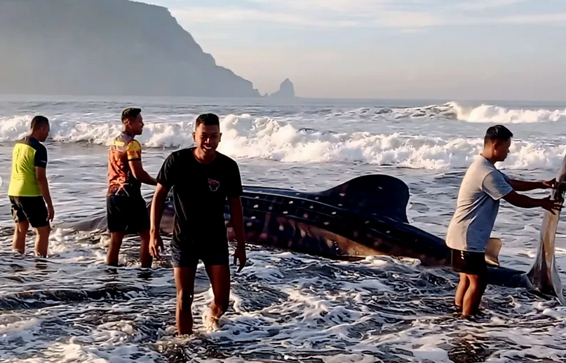 Namun, sekitar pukul 08.30 WIB, Hiu paus itu kembali terdampar setelah dihantam
