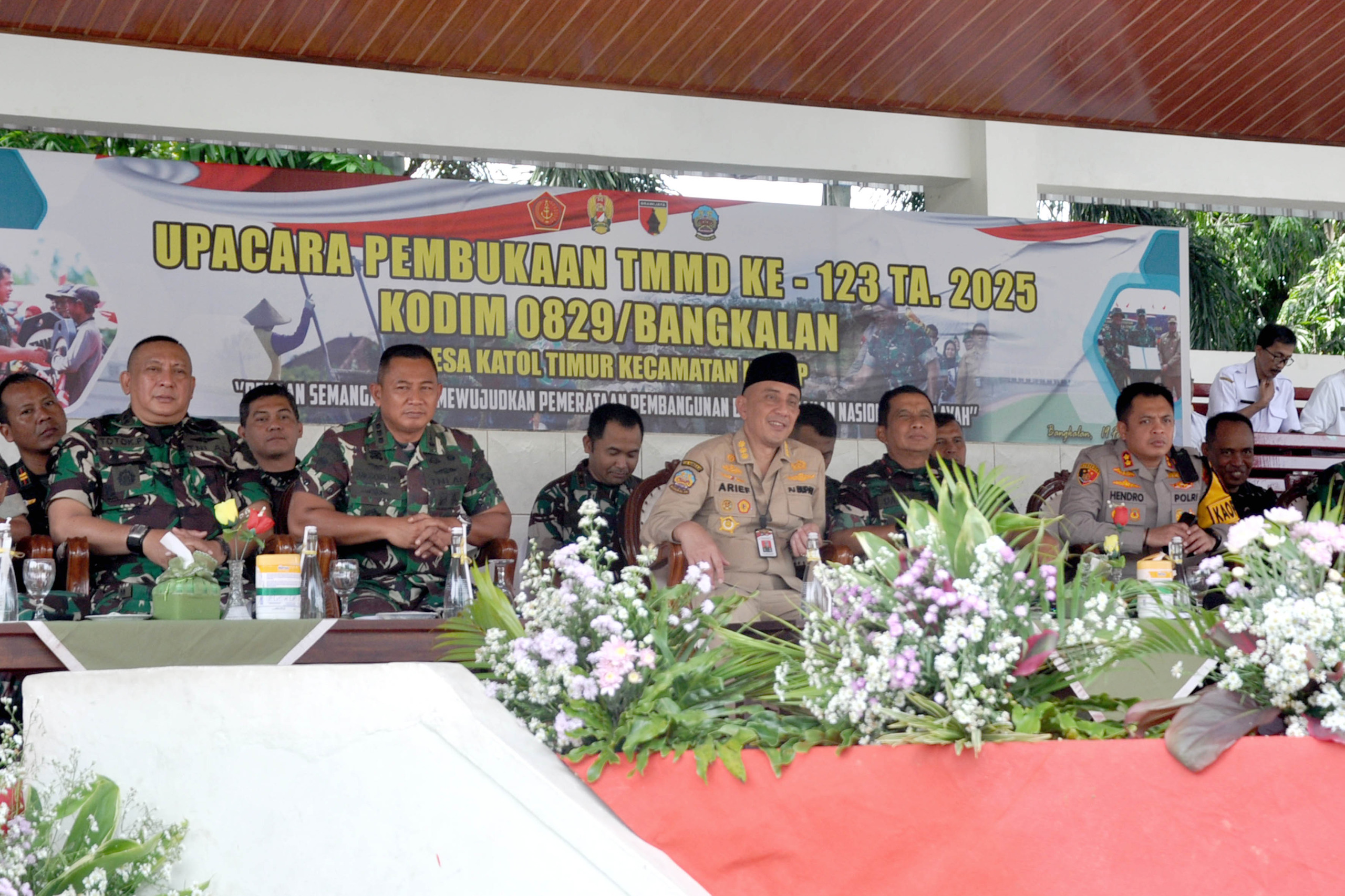 Saat membuka TNI Manunggal Membangun Desa yang bertemakan ââ¬ÅDengan Semangat TMMD Mewujudkan Pemerataan Pembangunan Dan Ketahanan Nasional di Wilayahââ¬Â, Pejabat Bupati Bangkalan Prof. Dr. Drs. Arief M. Edie, M.Si. dalam amanatnya menyampaikan ucapan terima kasih dan apresiasinya kepada seluruh pihak khususnya keluarga besar TNI yang penuh semangat dan loyalitasnya terus aktif dalam pembangunan sebagai upaya meningkatkan taraf kesejahteraan masyarakat dan memperkuat kedaulatan NKRI.