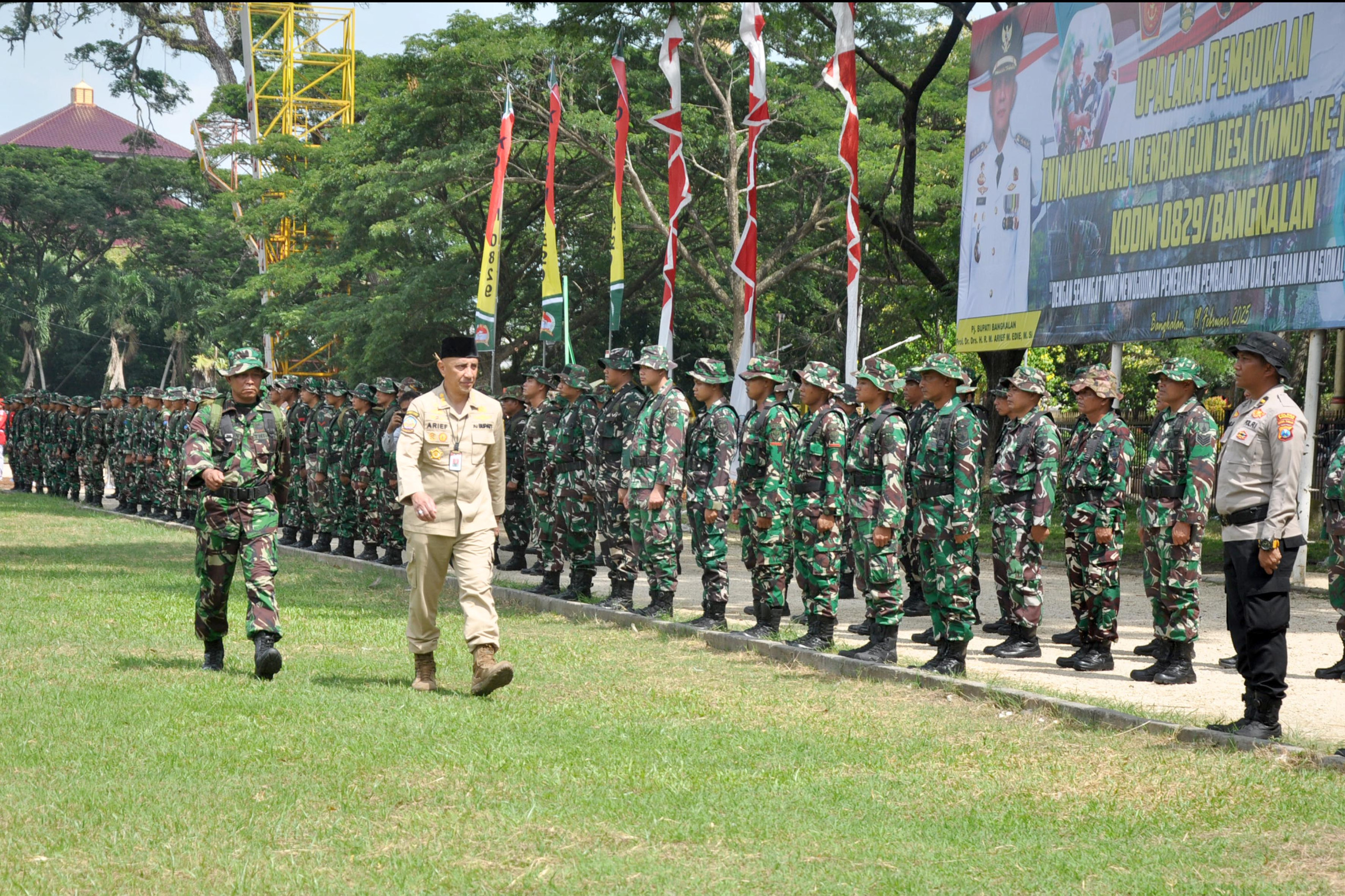 Dispen Kormar TNI AL (Bangkalan) Wakil Komandan Pasmar 2 Kolonel Marinir Arief Rahman H. Anggorojati, S.E., CTMP., M.M., menghadiri upacara pembukaan TNI Manunggal Membangun Desa (TMMD) ke 123 tahun anggaran 2025 Kodim 0829/Bangkalan di Alun Alun Selatan Kabupaten Bangkalan Madura. Rabu (19/02/2025).